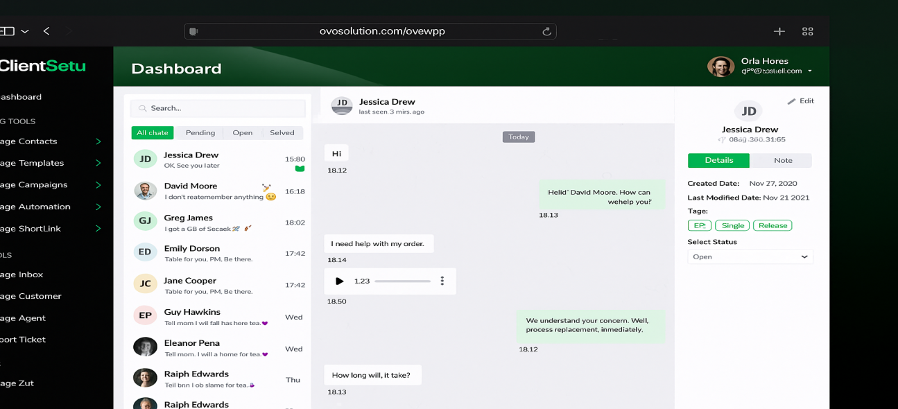 OvoWpp is a complete cross-platform WhatsApp CRM and marketing tool that helps businesses manage conversations, automate customer engagement, and run marketing campaigns through WhatsApp.